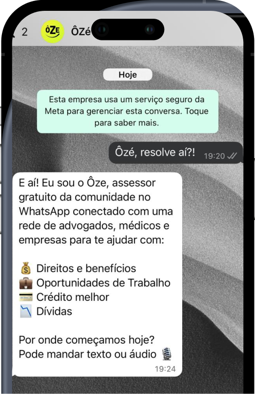 Ôze te orienta, te acompanha para resolver dívidas, destravar direitos, abrir caminho para trabalho e renda e dar acesso a crédito mais justo